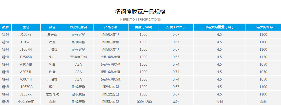 基于覆合的薄膜種類的不同,精鋼覆膜瓦有不同的型號(hào),適用于不同應(yīng)用場合。